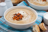 zupa kalafiorowa zimno z serem i grzankami, pionowe