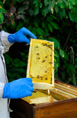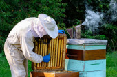Zdjęcie "Pszczelarz na pasiece. Pszczelarz pracuje z pszczołami i uli na pasiece. Koncepcja pszczelarstwa." może być wykorzystywane do celów osobistych i komercyjnych zgodnie z warunkami zakupionej licencji Royalty-free. Obraz jest dostępny do pobrania w jakości wysokiej rozdzielczości do 5760x3840.