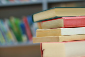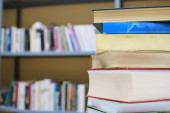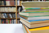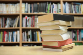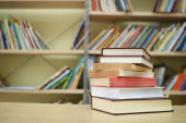 Książki na stole bibliotecznym