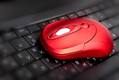 czerwony komputerową myszkę na klawiaturze, czarny