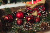 Zdjęcie "Czerwone świąteczne dekoracje na stole" może być wykorzystywane do celów osobistych i komercyjnych zgodnie z warunkami zakupionej licencji Royalty-free. Obraz jest dostępny do pobrania w jakości wysokiej rozdzielczości do 5760x3840.