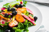 Zdjęcie "Grecka sałatka na drewnianym tle" może być wykorzystywane do celów osobistych i komercyjnych zgodnie z warunkami zakupionej licencji Royalty-free. Obraz jest dostępny do pobrania w jakości wysokiej rozdzielczości do 5760x3840.