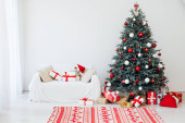 Sylwester Boże Narodzenie wnętrze dom wystrój czerwony choinka sosna prezenty