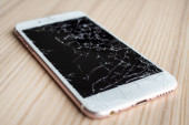 Rozbity telefon z pęknięciem na szkle wyświetlacza