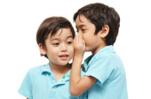 mały brat chłopcy udostępnianie w tajemnicy na białe tło