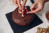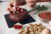 Zdjęcie "Cukiernik zdobi ciasto czekoladowe figami." może być wykorzystywane do celów osobistych i komercyjnych zgodnie z warunkami zakupionej licencji Royalty-free. Obraz jest dostępny do pobrania w jakości wysokiej rozdzielczości do 5760x3840.