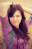 kobieta korzystających z wolności i życia na piękne i magiczne zachody słońca