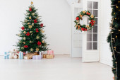 Girlanda choinka sosna z prezentami na nowy rok wystrój wnętrz czerwony biały