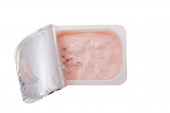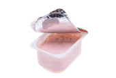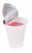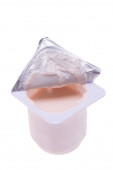 jogurt w plastikowym kubku izolowanym na białym tle