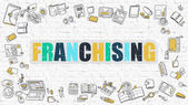 koncepcja finansowania: symbol finansów książki, franchisingu na białym tle