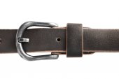 Skórzany pas dla mężczyzn, skórzany brązowy pas na białym tle, elegancki skórzany pas