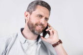 Zdjęcie "Biznesmen rozmawiający przez telefon" może być wykorzystywane do celów osobistych i komercyjnych zgodnie z warunkami zakupionej licencji Royalty-free. Obraz jest dostępny do pobrania w jakości wysokiej rozdzielczości do 5760x3840.