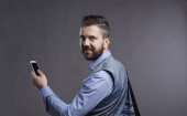 Zdjęcie "biznesmen z telefonem w ręku robi zdjęcie selfie" może być wykorzystywane do celów osobistych i komercyjnych zgodnie z warunkami zakupionej licencji Royalty-free. Obraz jest dostępny do pobrania w jakości wysokiej rozdzielczości do 5760x3840.