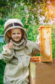 Doświadczony pszczelarz dziadek uczy swojego wnuka dbania o pszczoły. Pszczelarstwo. Koncepcja transferu doświadczeń