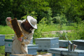 Zdjęcie "Pszczoły pracują nad plastrem miodu. Wzór komórek miodu. Pszczelarstwo" może być wykorzystywane do celów osobistych i komercyjnych zgodnie z warunkami zakupionej licencji Royalty-free. Obraz jest dostępny do pobrania w jakości wysokiej rozdzielczości do 5760x3840.