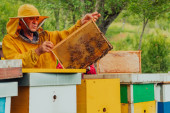 Zdjęcie "Pszczelarz w pasiece niedaleko uli. Pszczelarstwo. Apiary" może być wykorzystywane do celów osobistych i komercyjnych zgodnie z warunkami zakupionej licencji Royalty-free. Obraz jest dostępny do pobrania w jakości wysokiej rozdzielczości do 5760x3840.