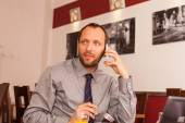 Biznesmen rozmawiający przez telefon komórkowy