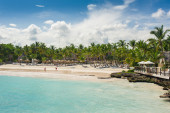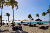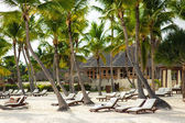 leżaki i parasol na oszałamiające tropikalnej plaży