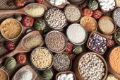 Nasiona zbierania zbóż izolowane na drewnianym stole