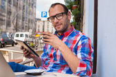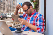 Zdjęcie "człowiek z tabletu i telefon" może być wykorzystywane do celów osobistych i komercyjnych zgodnie z warunkami zakupionej licencji Royalty-free. Obraz jest dostępny do pobrania w jakości wysokiej rozdzielczości do 5760x3840.