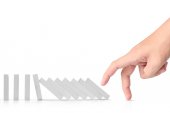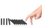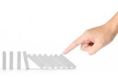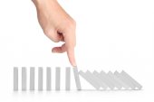 palec pchanie Domino z rzędu, powodując reakcję łańcuchową