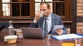 Zdjęcie "biznesmen z laptopem i telefonem komórkowym" może być wykorzystywane do celów osobistych i komercyjnych zgodnie z warunkami zakupionej licencji Royalty-free. Obraz jest dostępny do pobrania w jakości wysokiej rozdzielczości do 5760x3840.
