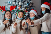 Zdjęcie "Wieloetniczni młodzi ludzie świętują Sylwestra trzymając ognie" może być wykorzystywane do celów osobistych i komercyjnych zgodnie z warunkami zakupionej licencji Royalty-free. Obraz jest dostępny do pobrania w jakości wysokiej rozdzielczości do 5760x3840.