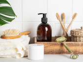 Zdjęcie "Brązowa makieta do butelek produktów kosmetycznych i różnych akcesoriów do kąpieli. Z przodu. skopiować przestrzeń. Leżeć płasko. makieta produktu kosmetycznego." może być wykorzystywane do celów osobistych i komercyjnych zgodnie z warunkami zakupionej licencji Royalty-free. Obraz jest dostępny do pobrania w jakości wysokiej rozdzielczości do 5760x3840.