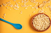 Zdjęcie "Orzechy sosny w ceramicznej misce i urządzone na eleganckim ciemnoszarym tle" może być wykorzystywane do celów osobistych i komercyjnych zgodnie z warunkami zakupionej licencji Royalty-free. Obraz jest dostępny do pobrania w jakości wysokiej rozdzielczości do 5760x3840.
