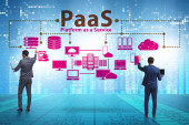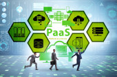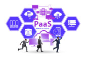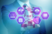 Biznesmen w platformie jako koncepcja usługi