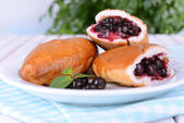 Świeże pieczone pasty z wiśni na tabliczce na stół szczegół