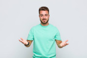 Młody człowiek krzyczący z podniesionymi rękami, wściekły, sfrustrowany, zestresowany i zdenerwowany