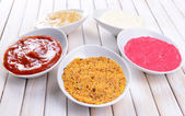 Zdjęcie "różne sosy na desce do krojenia na stół szczegół" może być wykorzystywane do celów osobistych i komercyjnych zgodnie z warunkami zakupionej licencji Royalty-free. Obraz jest dostępny do pobrania w jakości wysokiej rozdzielczości do 5760x3840.