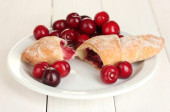 Świeże pieczone pasty z wiśni na tabliczce na stół szczegół