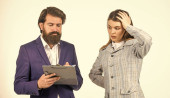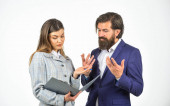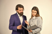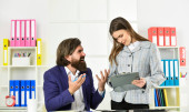 Zdjęcie "Komunikacja w pracy. Czasami partnerstwo jest trudne. Potrzebuję pomocy. Udane partnerstwo. Spotkanie biznesowe. Ryzykowny kontrakt. Mężczyzna i kobieta z dokumentami biurowymi. Koncepcja przedsiębiorstwa" może być wykorzystywane do celów osobistych i komercyjnych zgodnie z warunkami zakupionej licencji Royalty-free. Obraz jest dostępny do pobrania w jakości wysokiej rozdzielczości do 5760x3840.