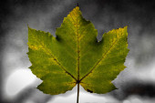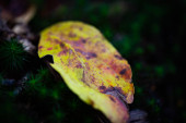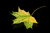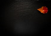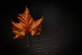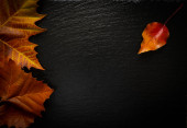 Wielokolorowy spadł jesienią liść na teksturowanym czarnym tle kamienia