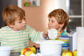 Zdjęcie "młody ojciec i synka w domu jedzenie kuchnia." może być wykorzystywane do celów osobistych i komercyjnych zgodnie z warunkami zakupionej licencji Royalty-free. Obraz jest dostępny do pobrania w jakości wysokiej rozdzielczości do 5760x3840.
