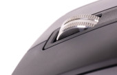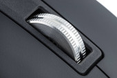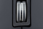 Makro ujęcie metalowego wałka z nowoczesnej bezprzewodowej myszy komputerowej.