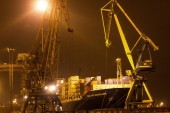Odessa 21 listopada: rozładunek, załadunek kontenerów na morzu ves