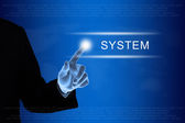 człowiek ręką dotykając przycisku system słów kluczowych