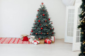 Choinka wystrój sosny z prezentów i girlandy wnętrza nowy rok