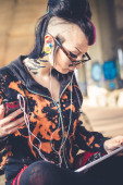 ciemny dziewczyna punk za pomocą tabletu