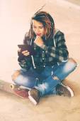 Zdjęcie "ciemny dziewczyna punk za pomocą tabletu" może być wykorzystywane do celów osobistych i komercyjnych zgodnie z warunkami zakupionej licencji Royalty-free. Obraz jest dostępny do pobrania w jakości wysokiej rozdzielczości do 5760x3840.