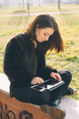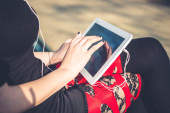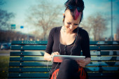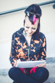 dziewczyna punk za pomocą tabletu