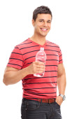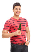 Portret uśmiechniętego mężczyzny w mundurze i czerwona czapka na białym tle