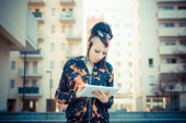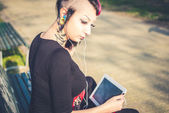 dziewczyna punk za pomocą tabletu