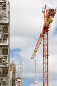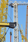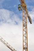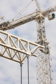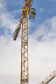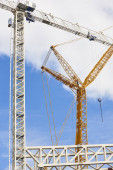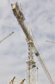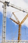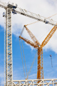Teleskopowe żurawie pod białym niebem. Budownictwo