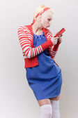 emocje stanowią blond dziewczynka w czerwonym wełnisty