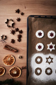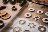 Zdjęcie "Widok z góry ciasteczka świąteczne" może być wykorzystywane do celów osobistych i komercyjnych zgodnie z warunkami zakupionej licencji Royalty-free. Obraz jest dostępny do pobrania w jakości wysokiej rozdzielczości do 5760x3840.
