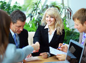 spotkanie biznesowe - kierownik dyskusji na temat pracy z kolegami